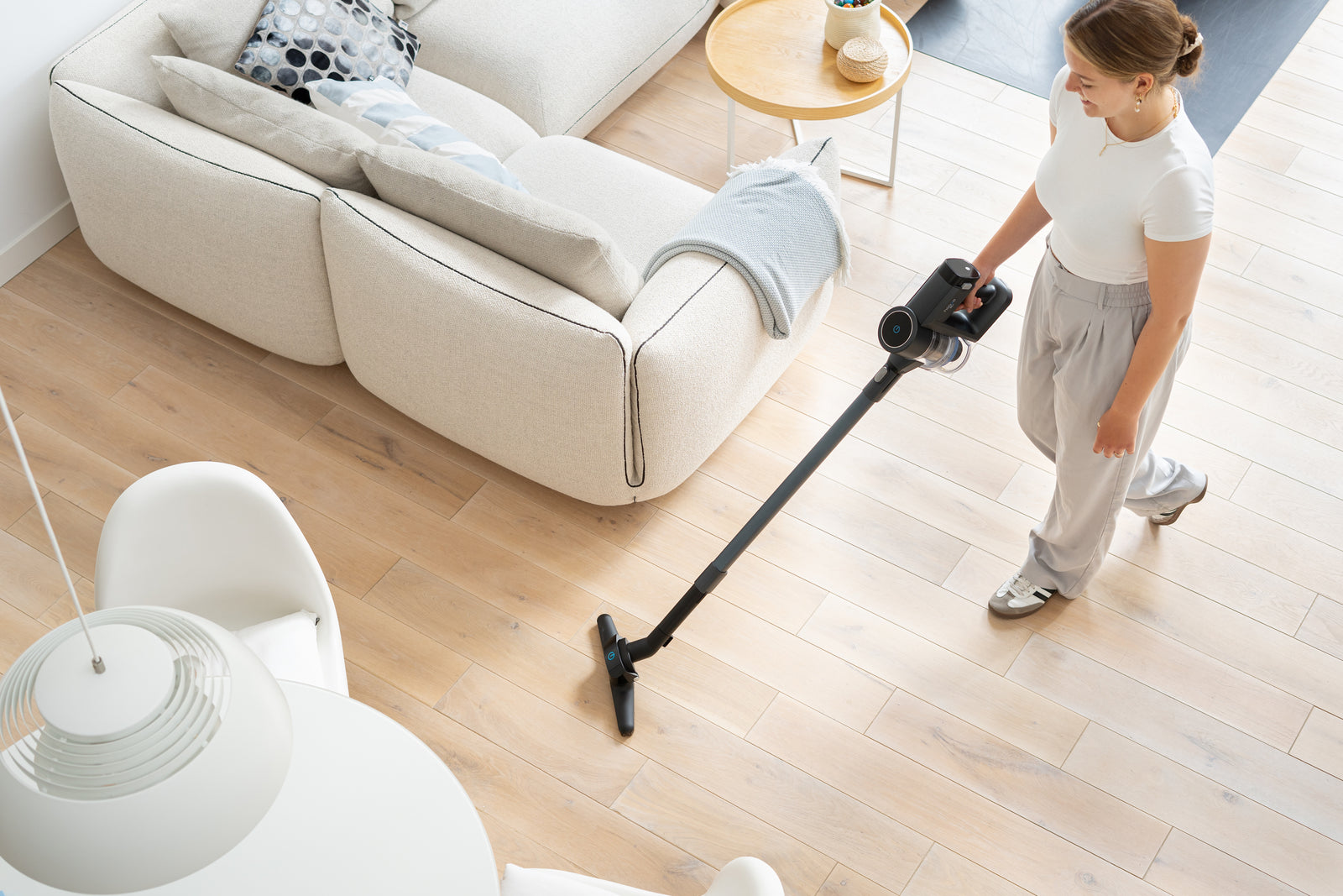 Desde suelos y azulejos hasta rincones, paredes y techos, nuestro dispositivo se encarga sin esfuerzo de limpiar cada rincón de manera delicada. Ya sea como aspiradora de mano, de varilla o con boquilla, tú decides y puedes cambiar fácilmente.